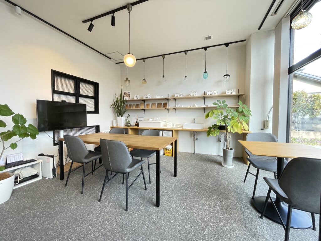 入口の土間スペースを縮小し、その分打合せスペースをゆったり使えるようになりました。